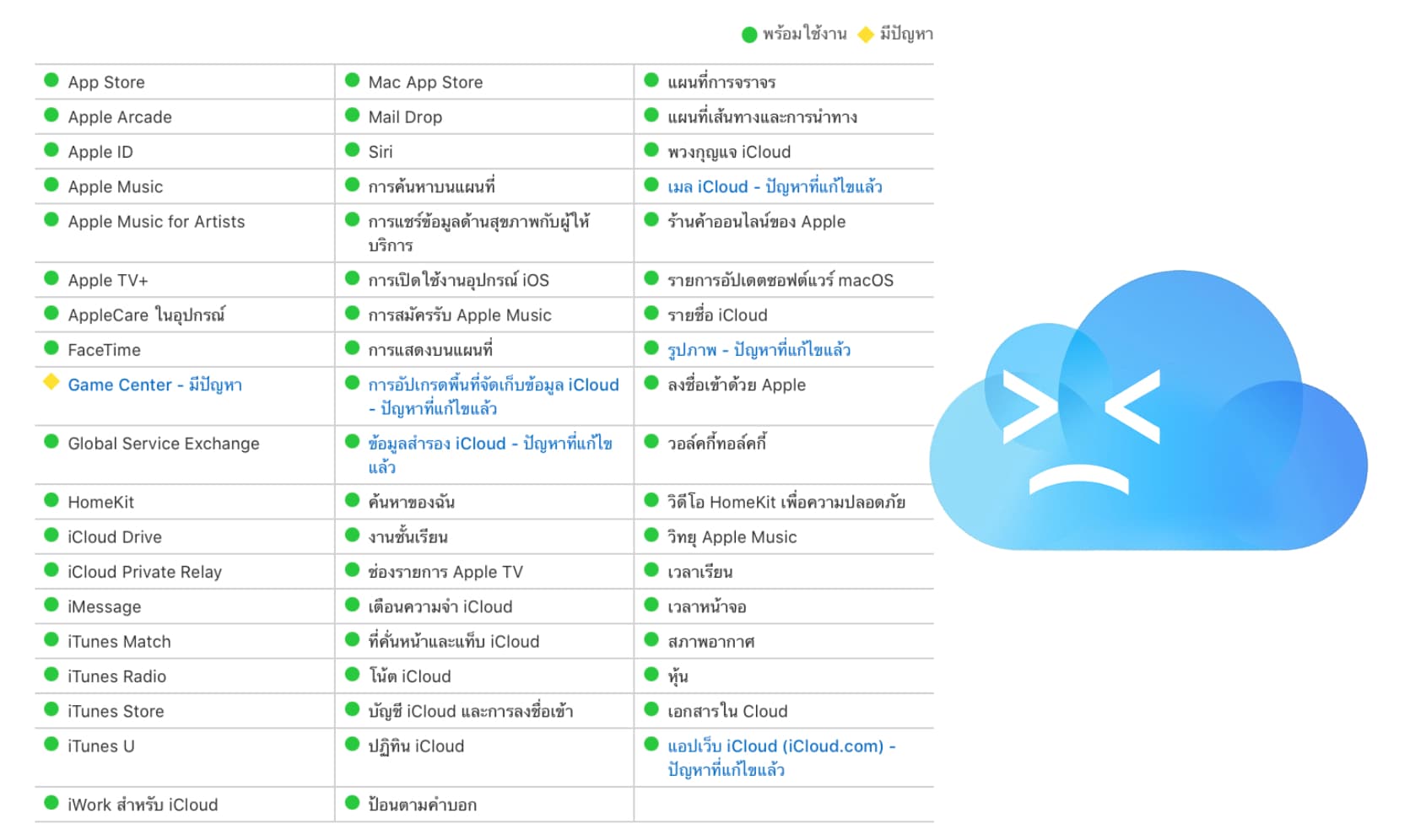 ตรวจสอบสถานะระบบบริการของ Apple ที่นี่