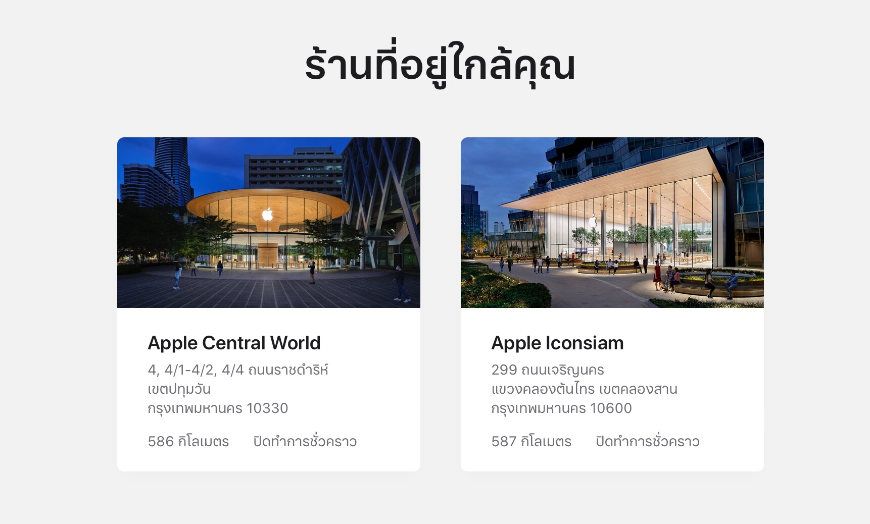 - ไม่สามารถสั่งซื้อสินค้าออนไลน์ แล้วไปรับ Apple Store ทั้ง 2 สาขาได้