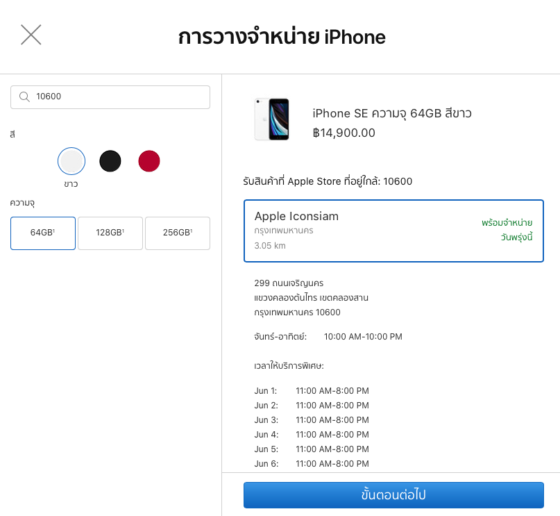 สำหรับการสั่งซื้อสินค้านั้น ลูกค้าสามารถกดสั่งซื้อสินค้าผ่าน Apple Store ออนไลน์แล้วไปรับสินค้าที่ Apple Iconsiam ได้แล้วเช่นกัน