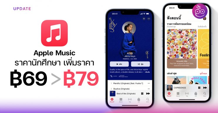Apple Music สำหรับนักศึกษาปรับราคาเพิ่มขึ้น จากเดิม 69 บาทเป็น 79 บาท ต่อเดือน มีผลทันที ส่วนแผนบริการอื่นยังราคาเดิม