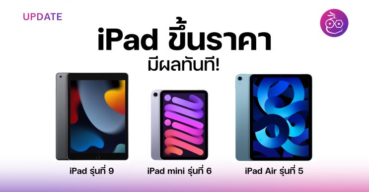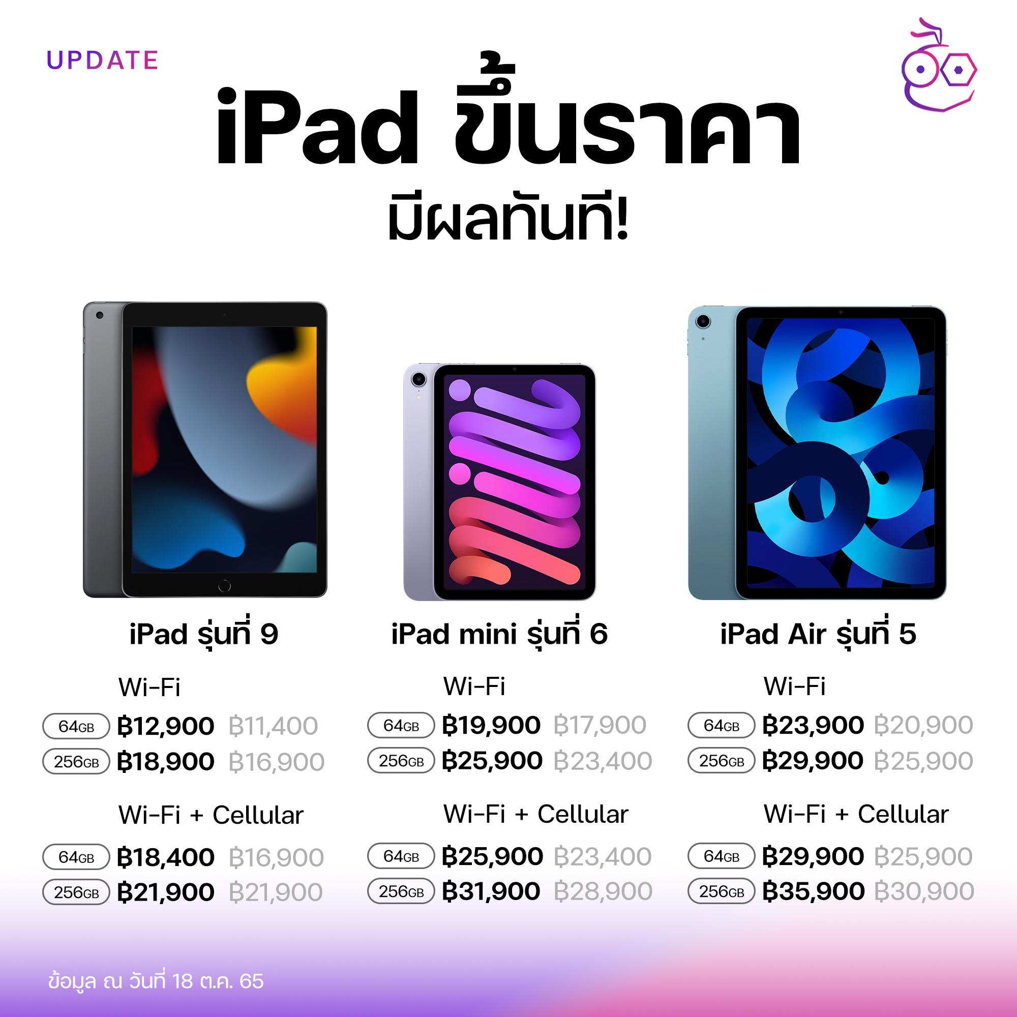 มีการปรับราคาของ iPad รุ่นที่ 9, iPad mini รุ่นที่ 6 และ iPad Air รุ่นที่ 4 ดังนี้
