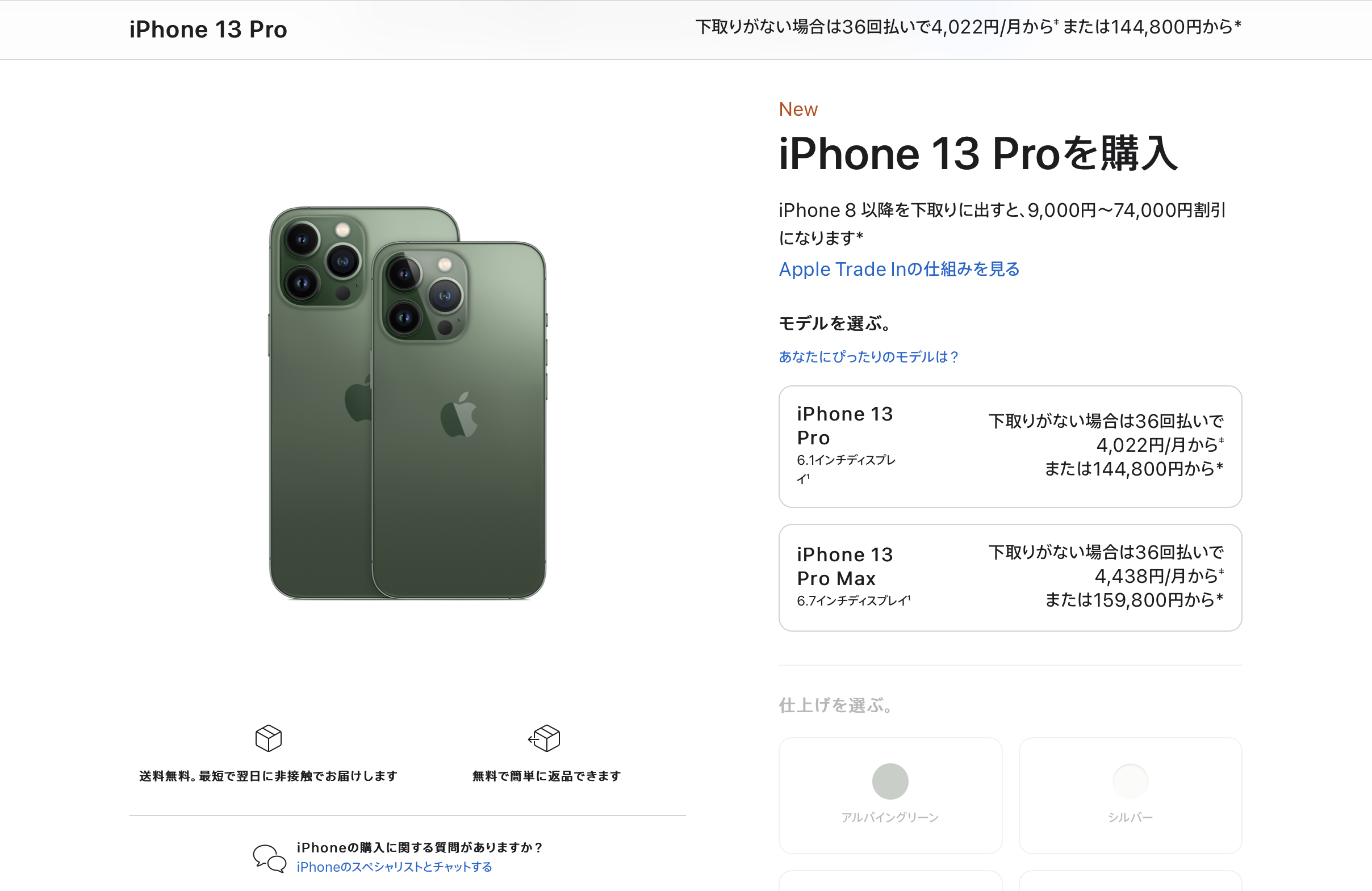 ⋅ iPhone 13 Pro 128GB เดิม 122,800 เยน เป็น 144,800 เยน