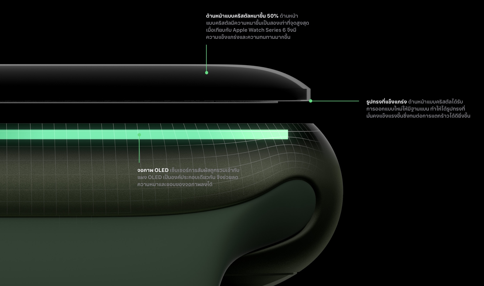 Apple Watch Series 7 ลดขนาดขอบจอลง 40% ทำให้มีพื้นที่หน้าจอมากกว่า Series 6 ถึงเกือบ 20% และมากกว่า Series 3 เกิน 50% อีกด้วย