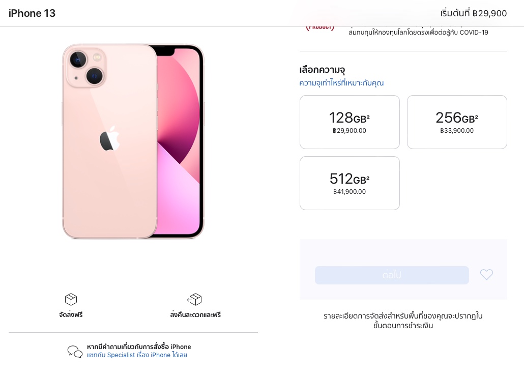 ราคาจำหน่าย iPhone 13, iPhone 13 mini มีดังนี้