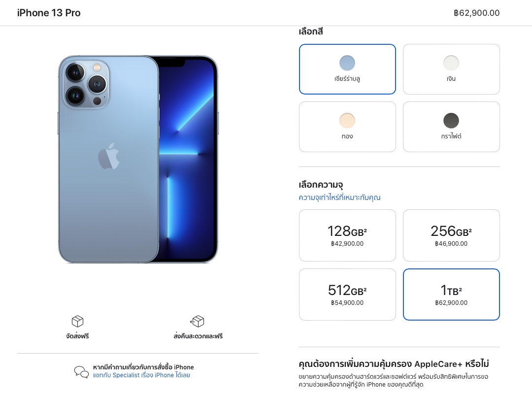ราคาจำหน่าย iPhone 13 Pro, iPhone 13 Pro Max มีดังนี้