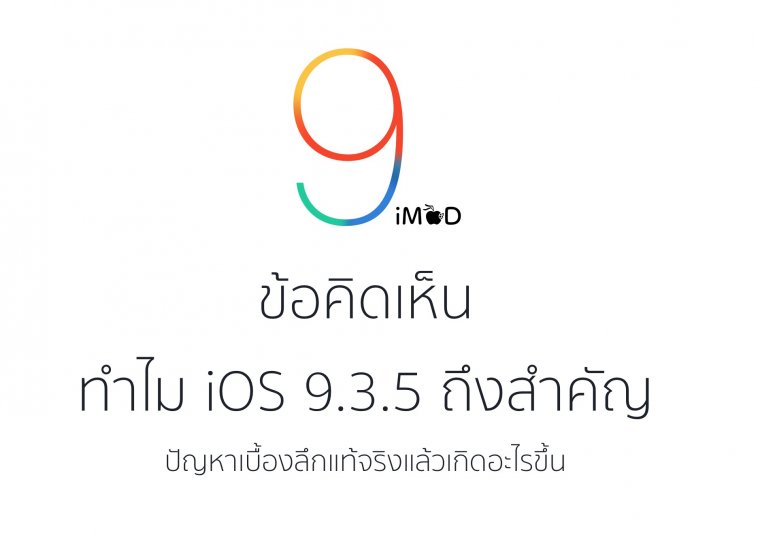 เหมือนล่าสุดที่ Apple ออกอัปเดต iOS 9.3.5 เพื่อแก้ปัญหาเรื่องความปลอดภัย จริงๆ แล้วปัญหานี้เป็นสิ่งที่ค่อนข้างซีเรียสกับผู้ใช้งานมาก เนื่องจากเป็น ปัญหาจากมัลแวร์ Pegasus ถ้าผู้ใช้คลิกลิงก์ของ Hacker แล้วตัว iOS จะถูก Jailbreak โดยอัตโนมัติพร้อมติดตั้งเครื่องมือของนักล้วงข้อมูล ส่งผลผู้ไม่หวังดีสามารถควบคุมข้อมูลในระบบต่างๆ และขโมยข้อมูลต่างๆ ภายในอุปกรณ์ได้อย่างง่ายดาย พูดง่ายๆ ไม่ต่างกับการโดนปล้นนั่นเอง