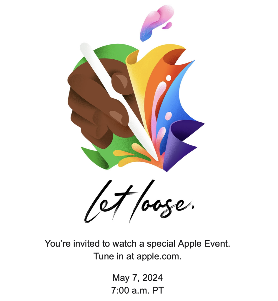 Apple ได้ประกาศจัดงาน “Let Loose” วันที่ 7 พ.ค. 2024 คาดเปิดตัว iPad รุ่นใหม่ อย่าง iPad Pro, iPad Air และอุปกรณ์เสริม iPad โดยมีกำหนดถ่ายทอดสดงาน วันที่ 7 พ.ค. 2024 เวลา 21.00 น. ตามเวลาประเทศไทย และยังมีข่าวลือว่าจะเปิดตัว iPad Air 6 ที่ใช้ชิป M2 และรุ่นที่มีหน้าจอขนาด 12.9″ เป็นครั้งแรก