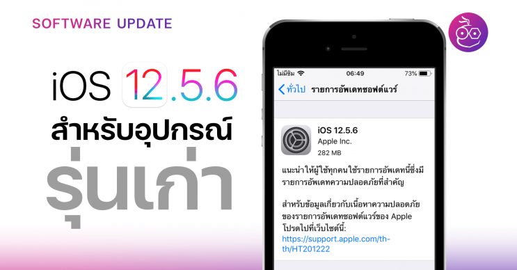 Apple ปล่อย iOS 12.5.6 ออกมาให้ผู้ใช้ iPhone หรือ iPad รุ่นเก่าได้อัปเดต โดยเวอร์ชันนี้อัปเดตความปลอดภัยที่สำคัญ ผู้ใช้อุปกรณ์รุ่นเก่าควรอัปเดต