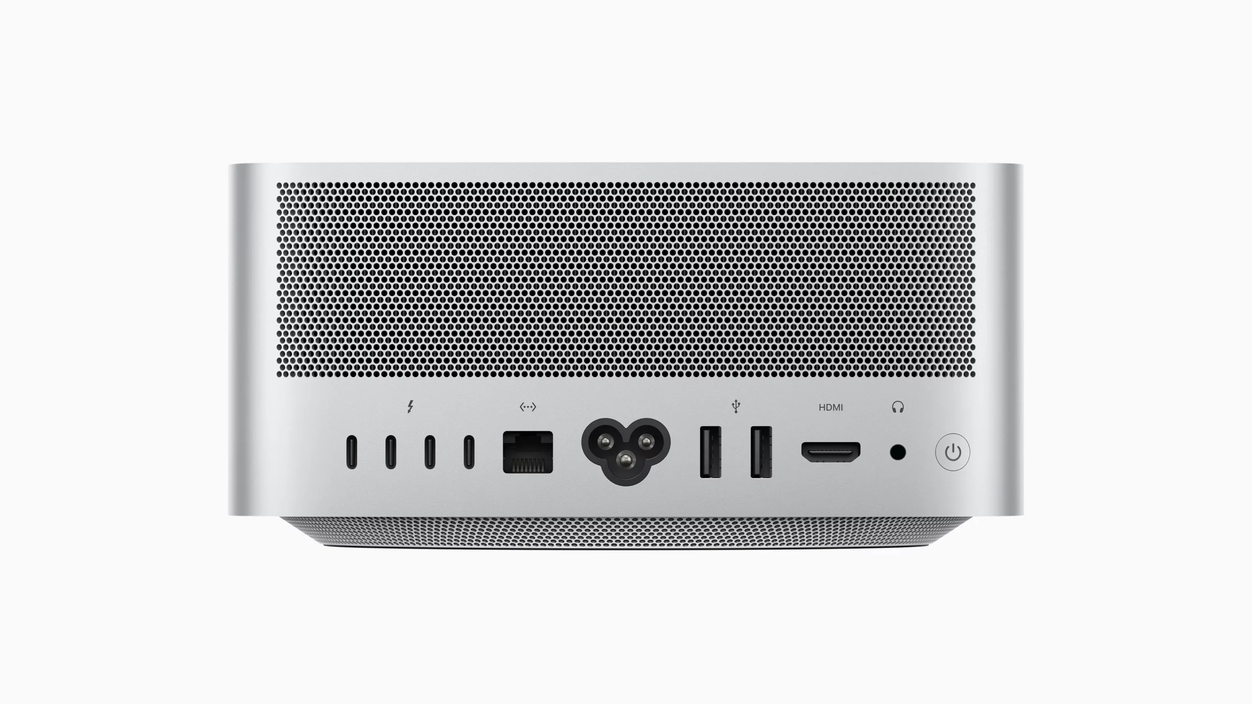 - ด้านหลัง: พอร์ต Thunderbolt 5 จำนวน 4 พอร์ต, พอร์ต USB-A จำนวน 2 พอร์ต, พอร์ต HDMI, พอร์ต 10Gb Ethernet, ช่องต่อหูฟัง