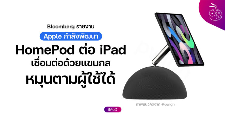 รายงานเผยว่า Apple กำลังพัฒนา HomePod ตัวใหม่เพื่อมาแข่งขันในตลาด Smartspeaker ที่ Google และ Amazon นำอยู่ โดย HomePod ตัวใหม่จะสามารถเชื่อมต่อกับ iPad เพื่อสนทนาวิดีโอได้ ซึ่งลักษณะการเชื่อมต่อนั้นจะเชื่อมต่อกันด้วยแขนกล