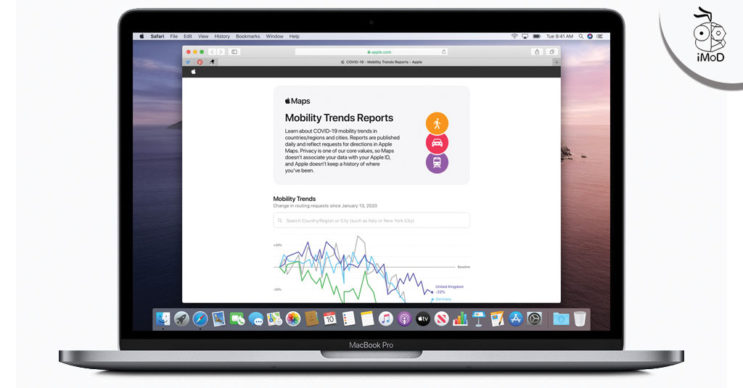 Apple เผยว่าการเปิดตัว เครื่องมือแสดงข้อมูลแนวโน้มการเคลื่อนที่จาก Apple Maps ก็เพื่อนำเสนอข้อมูลสำหรับสนับสนุนภาครัฐและหน่วยงานสาธารณสุขท้องถิ่นเพื่อใช้รับมือวิกฤต COVID-19