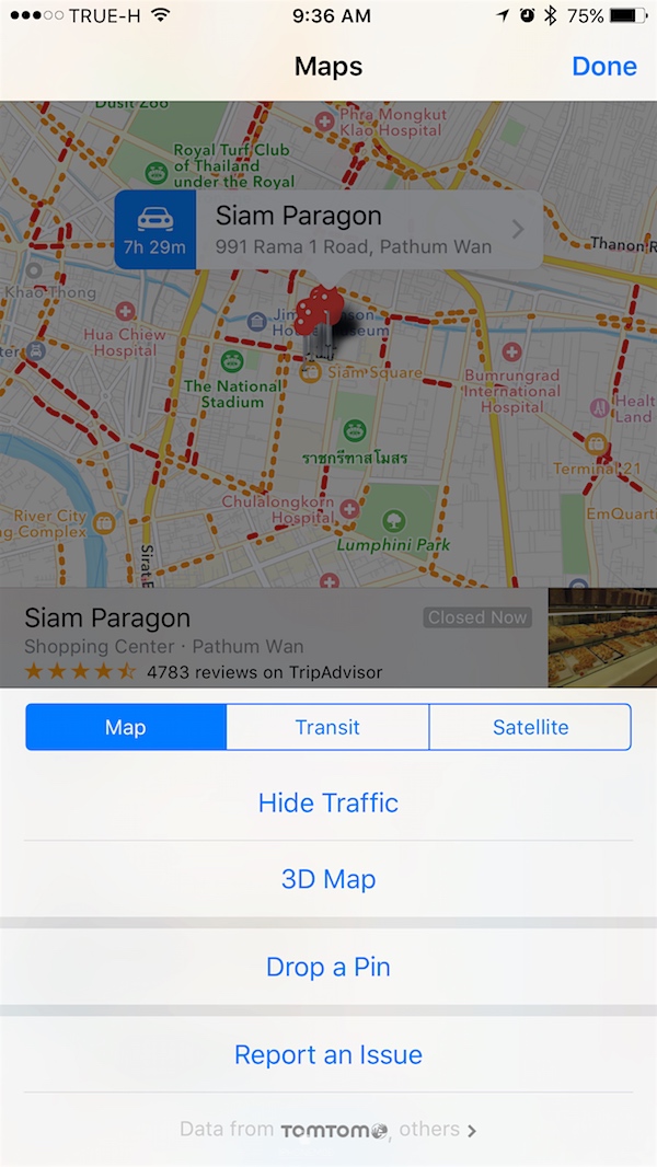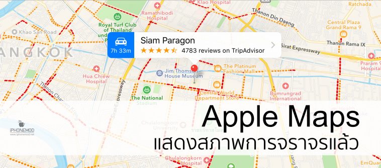 เป็นเรื่องที่น่ายินดีอีกอย่างสำหรับคนไทยเมื่อทาง Apple ได้พัฒนา Apple Maps ให้สามารถแสดงสภาพการจราจรในประเทศไทยได้เป็นที่เรียบร้อยแล้ว