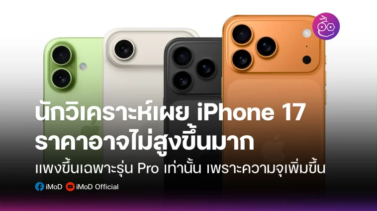 iPhone 17 ราคาอาจไม่ได้เพิ่มขึ้นมาก ตามที่คาดการณ์ไว้