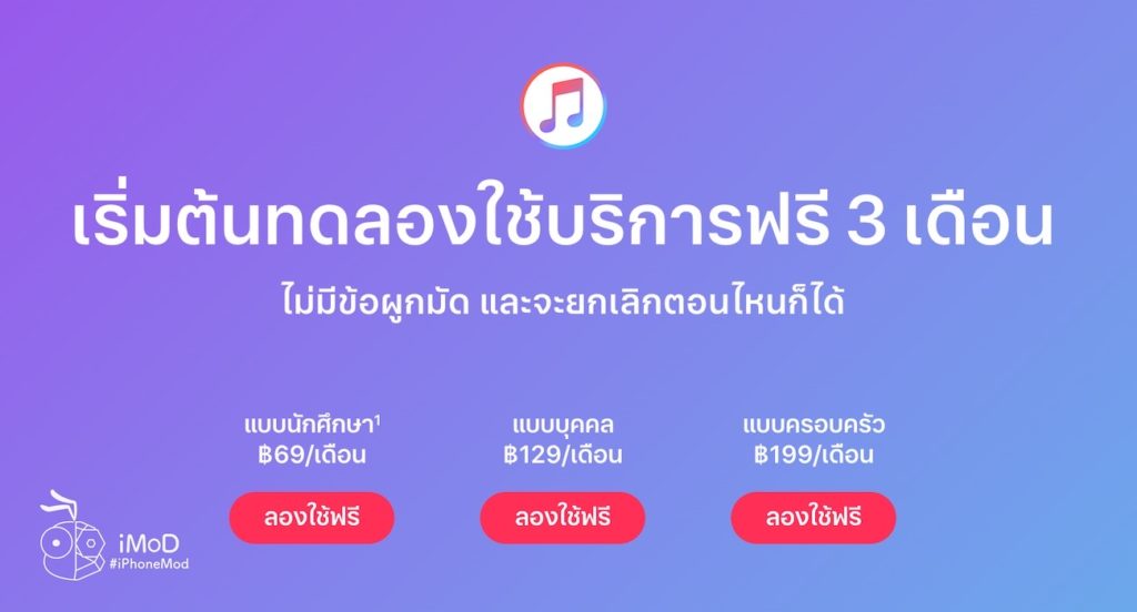 ผู้ใช้สามารถลงชื่อเข้าใช้ด้วยบัญชี Apple ID ที่เคยรับสมัคร Apple Music หรือถ้ายังไม่ได้รับสมัครก็เริ่มกระบวนการสมัครสมาชิกได้จากทีวี และถ้าหากมีการลงทะเบียนสมัครรับ Apple Music ผ่านสมาร์ตทีวี Samsung จะได้รับสิทธิ์ทดลองใช้งานฟรีสามเดือนเช่นเดียวกับแพลตฟอร์มอื่น ๆ จากนั้นก็มีค่าบริการรายเดือน 129 บาทต่อเดือน (สำหรับบุคคล)