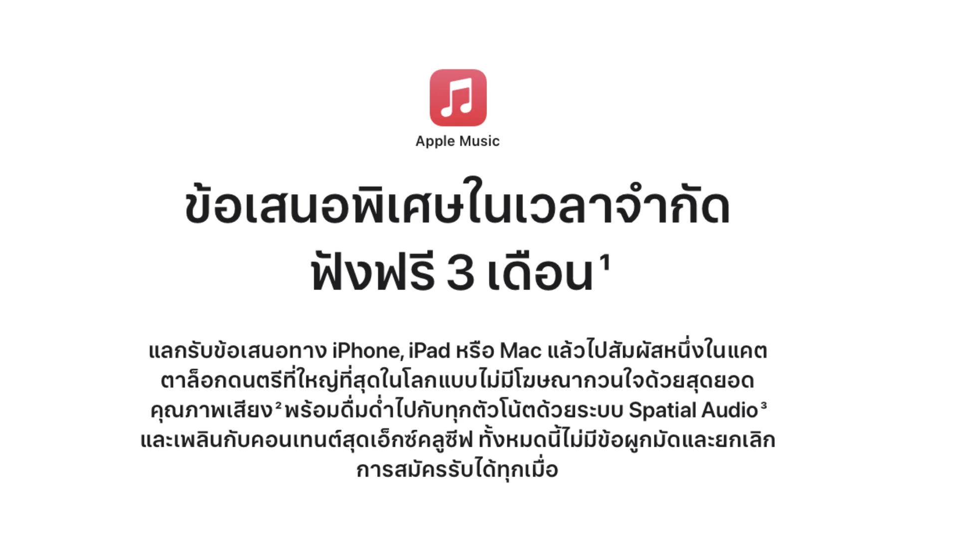 ผู้ใช้ใหม่ที่ไม่เคยใช้งาน Apple Music มาก่อน อย่าลืมรับสิทธิ์ฟัง Apple Music ฟรี 3 เดือน แลกรับข้อเสนอนี้ได้ตั้งแต่วันที่ 7 สิงหาคม ถึง 23 กันยายน 2024 นี้เท่านั้น