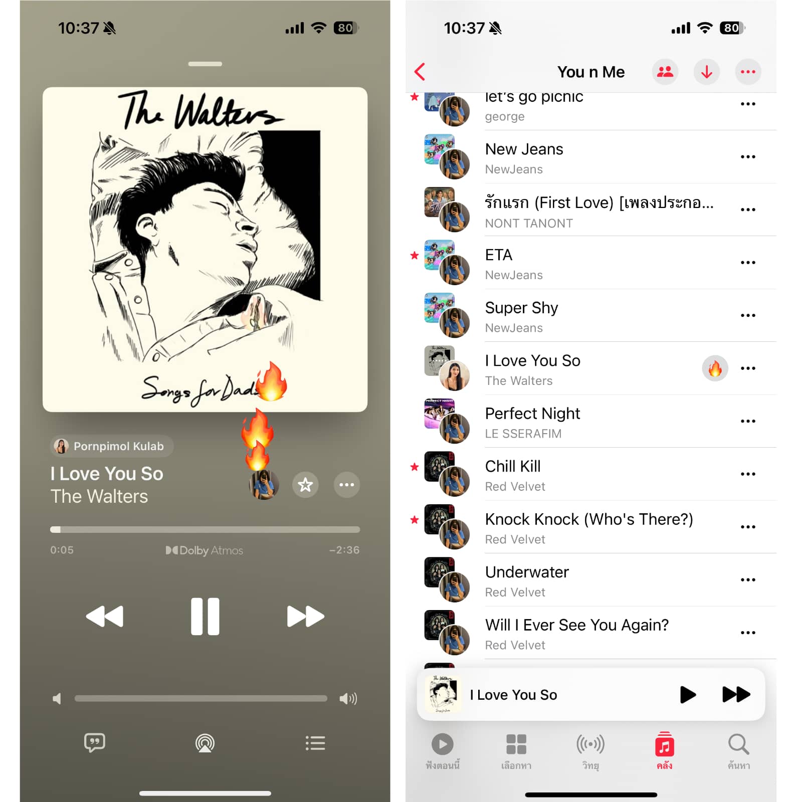 • กดอิโมจิแสดงความรู้สึกในเพลงที่เพื่อนเพิ่มเข้ามาในเพลย์ลิสต์ได้