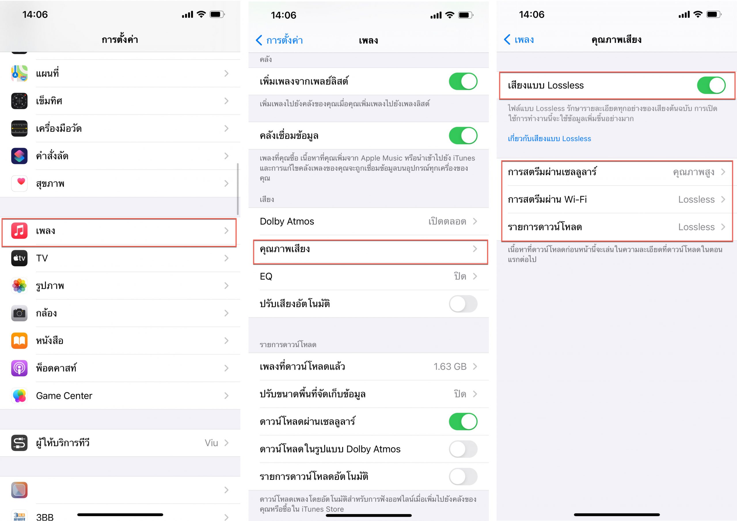 สำหรับการเปิดใช้งานนั้น สมาชิกที่ใช้ Apple Music สามารถเริ่มฟังเสียงแบบ Lossless ได้ โดยไปที่ การตั้งค่า > เพลง > คุณภาพเสียง แล้วเปิดใช้งาน