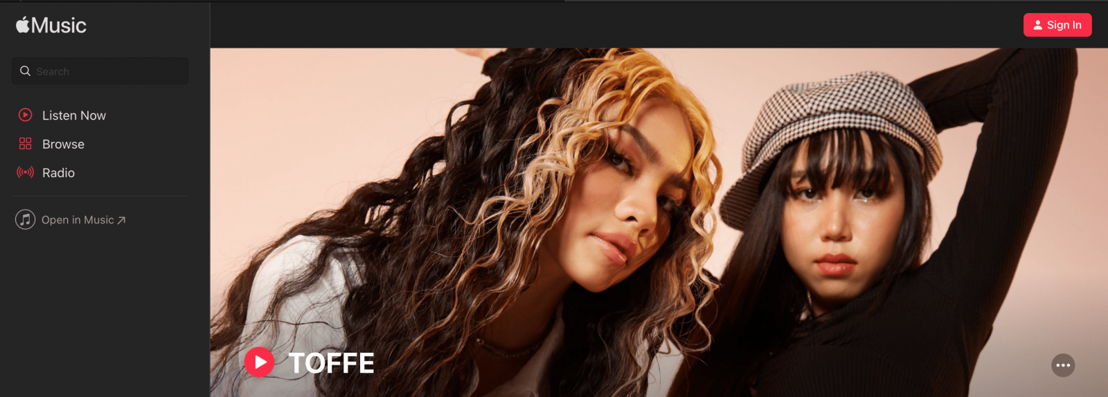 Apple Music ประเทศไทยเปิดตัว Up Next เพื่อส่องสปอตไลท์ให้กับศิลปินหน้าใหม่ไฟแรงที่ทุกคนควรจับตามอง เริ่มจาก TOFFE สองสาวคู่หู Alternative Pop แตงโมและฟรองซ์ ที่จะมาเขย่าวงการเพลงไทยด้วยซิงเกิลใหม่ “หัวใจเธอสีอะไร” และให้ทุกคนได้รู้จักกับพวกเธอมากยิ่งขึ้นผ่านเพลย์ลิสต์ Influences ที่รวบรวมเพลงอันเป็นแรงบันดาลใจให้กับซาวนด์ของพวกเธอบน Apple Music