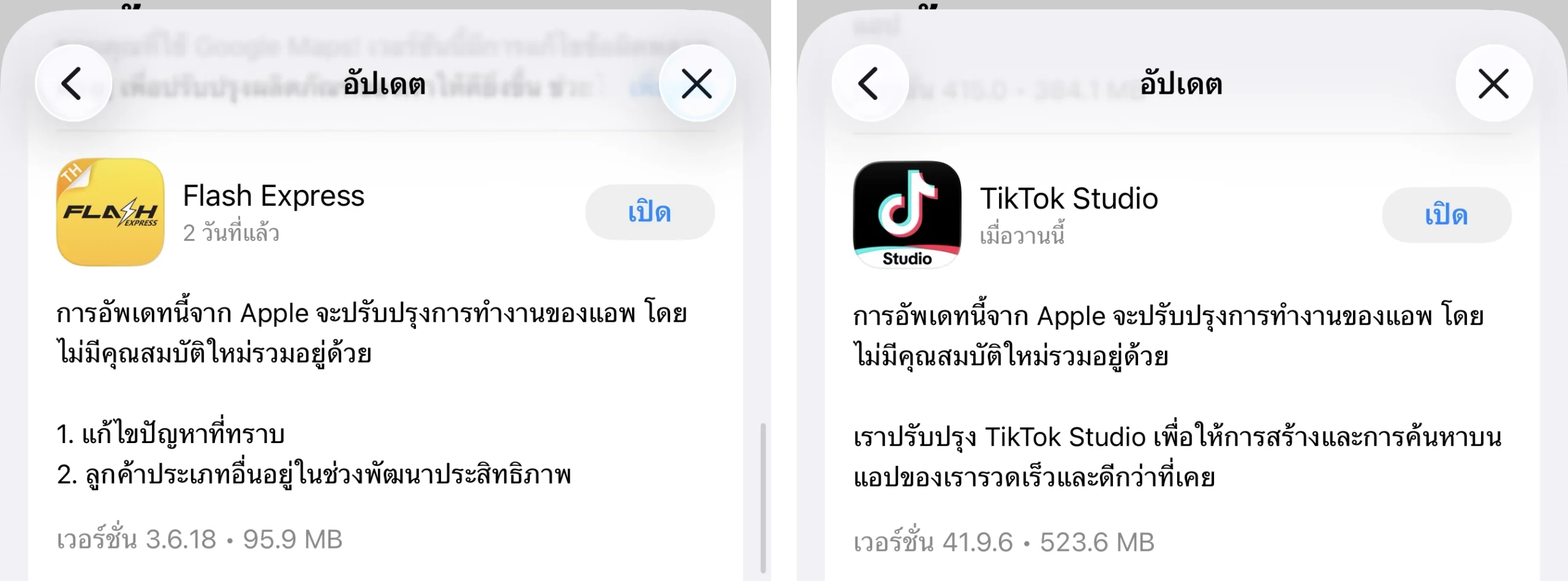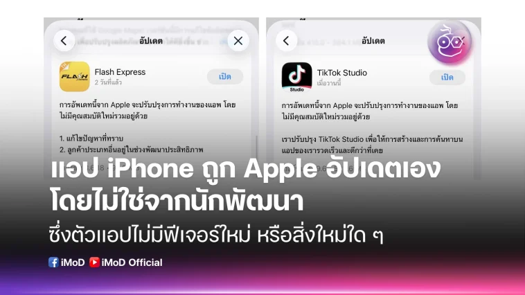 - ข้อความอัปเดต (update notes) บางแอปถูกเพิ่มโดย Apple