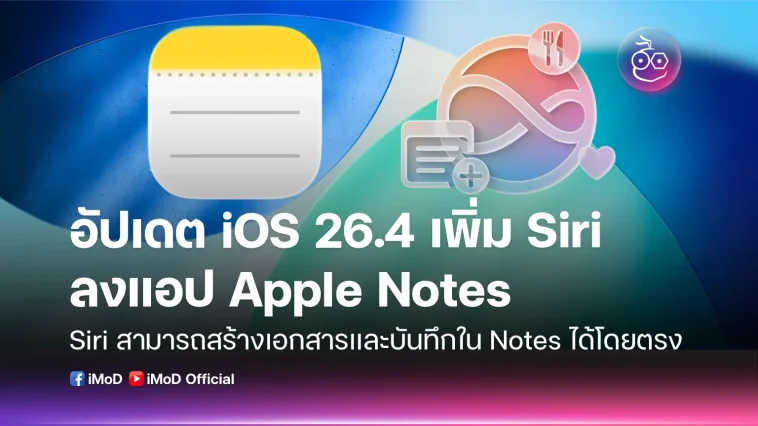 อัปเดต iOS 26.4 เพิ่ม Siri ลงแอป Apple Notes