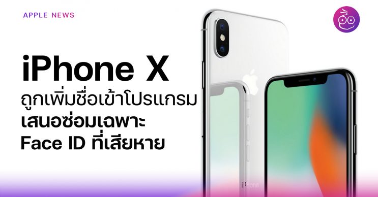 MacRumors เผยว่า Apple เพิ่ม iPhone X เข้าโปรแกรมเสนอซ่อมเฉพาะ Face ID ที่เสียหายแล้ว โดยไม่ต้องเปลี่ยนเครื่องใหม่แบบเดิม