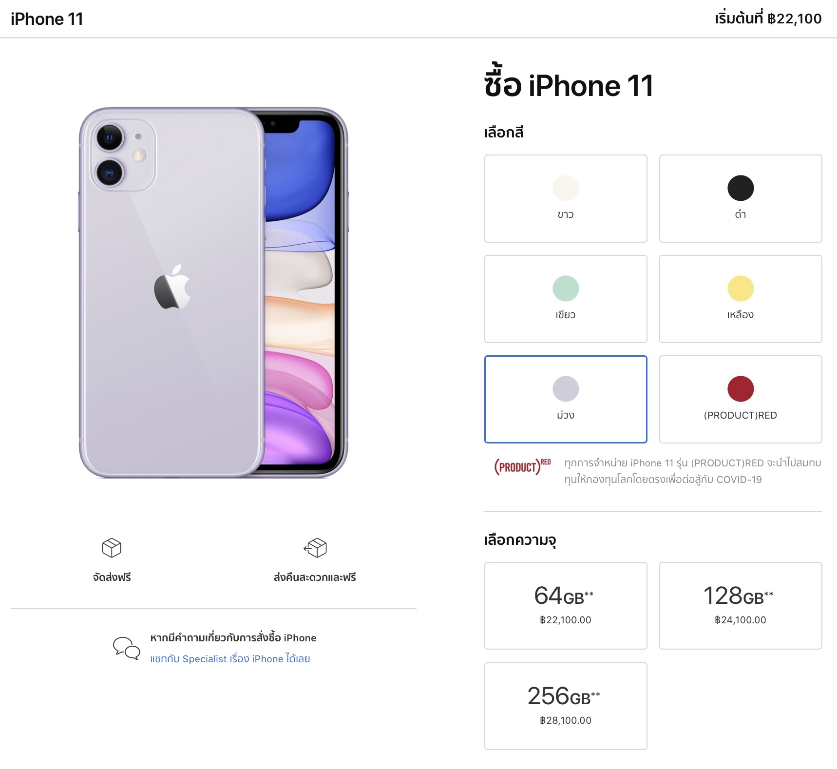 - iPhone 11 64GB เหลือ 22,100 บาท จากเดิม 24,900 บาท ลดไป 2,800 บาท