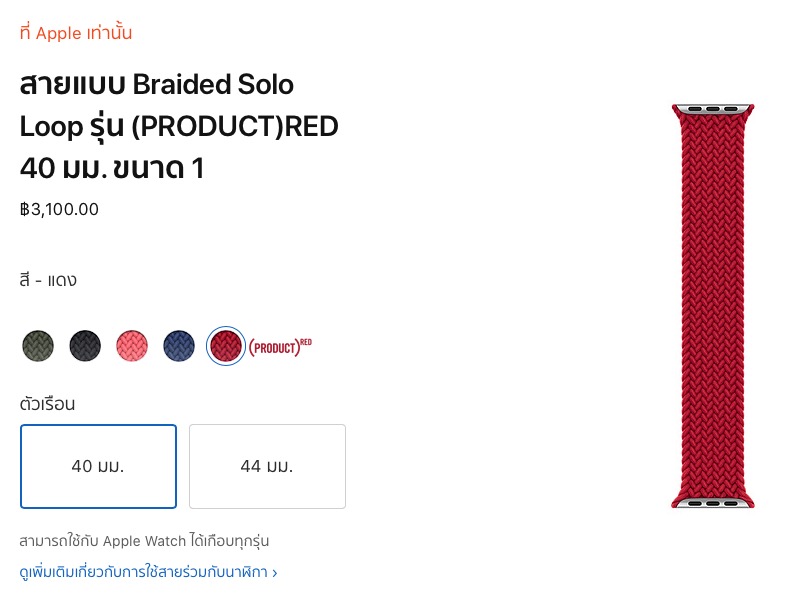 สามารถซื้อ Apple Watch Series 6 สีแดง (PRODUCT)RED พร้อมสาย Solo Loop, Braided Solo Loop สีแดง (PRODUCT)RED ได้ที่ Apple Store ออนไลน์ไทย :