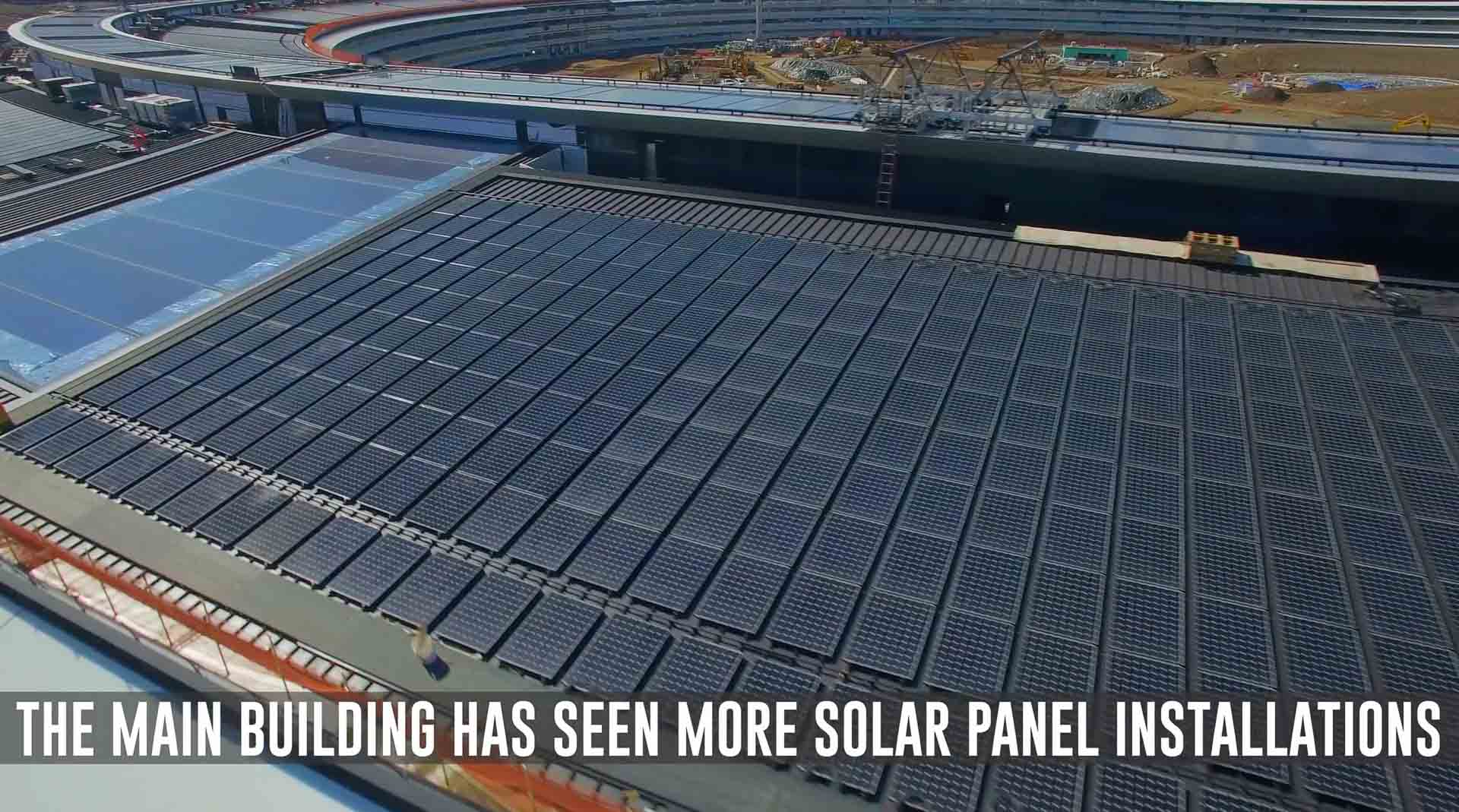 อาคารหลักติดตั้งแผง Solar Cell เพิ่มขึ้น อย่างที่เคยเรียนให้ทราบว่า Apple Park จะใช้พลังงานสะอาด 100% ในการขับคลื่นถือว่าเป็นอาคารต้นแบบของโลกเลยก็ว่าได้