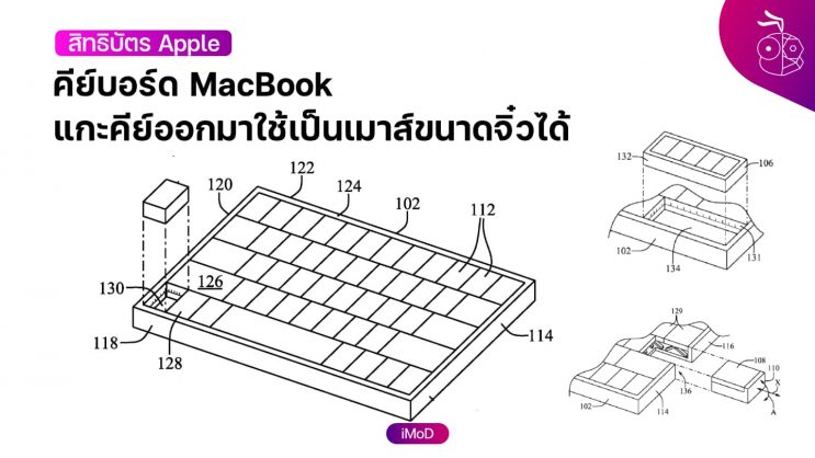 สิทธิบัตรคีย์บอร์ด MacBook ที่แกะคีย์หนึ่งออกมาใช้เป็นเมาส์ได้