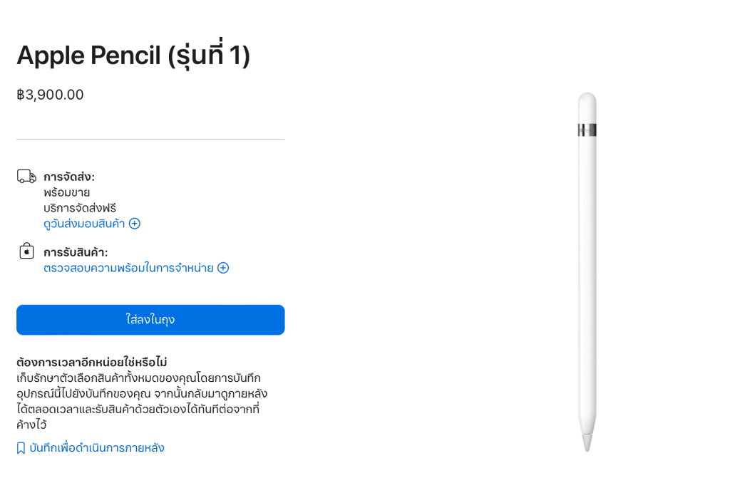 คลิก เพื่อสั่งซื้อ Apple Pencil (รุ่นที่ 1)