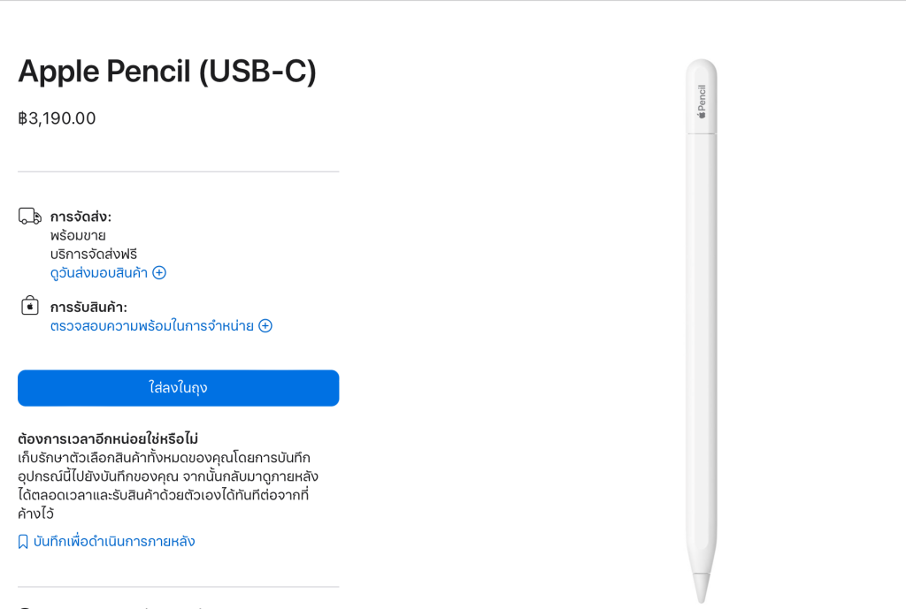คลิก เพื่อสั่งซื้อ Apple Pencil (USB‑C)
