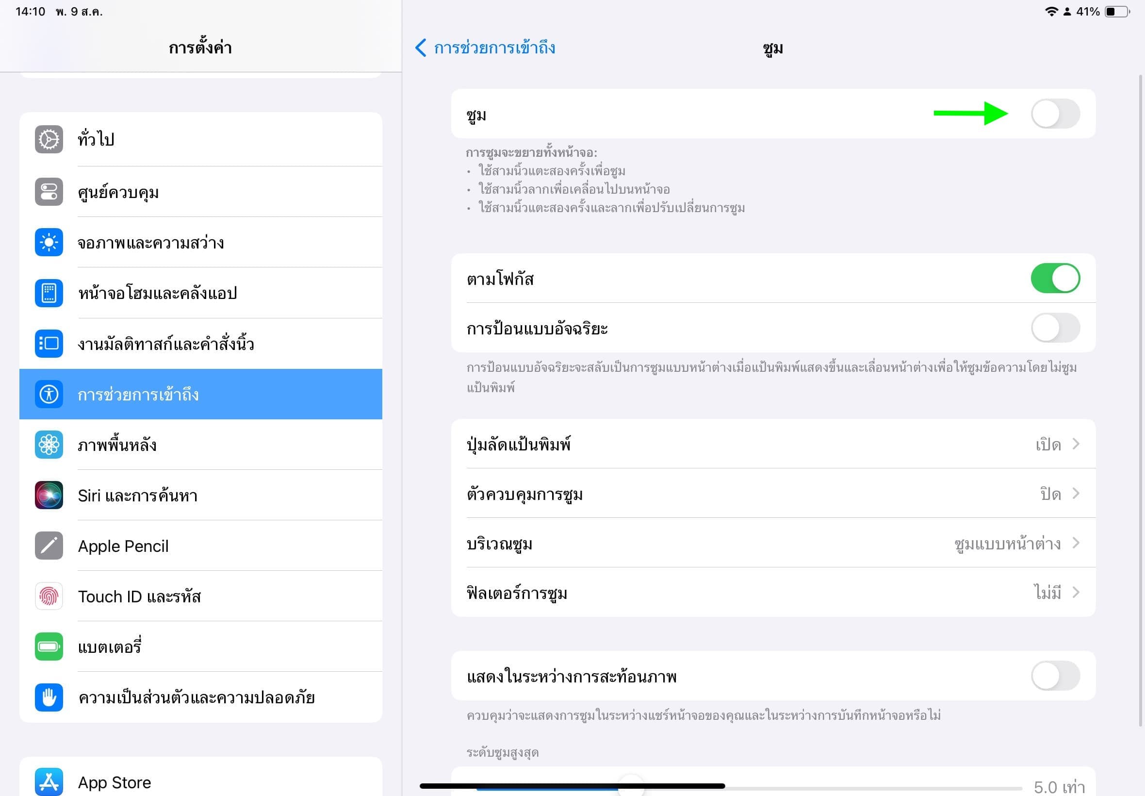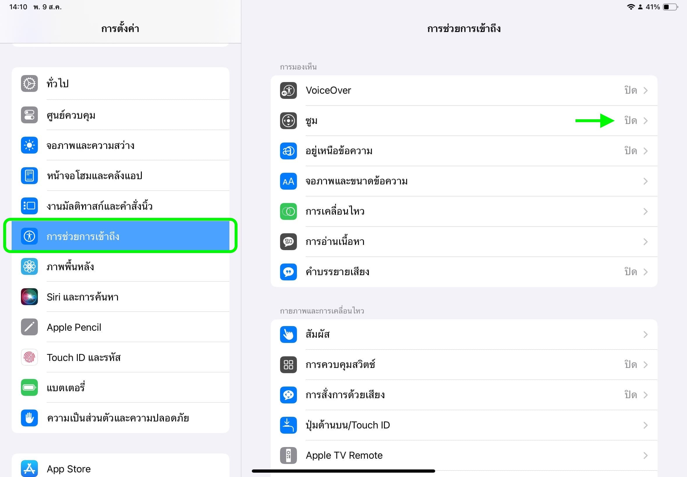 เข้าไปที่แอปการตั้งค่า > การช่วยการเข้าถึง > ซูม