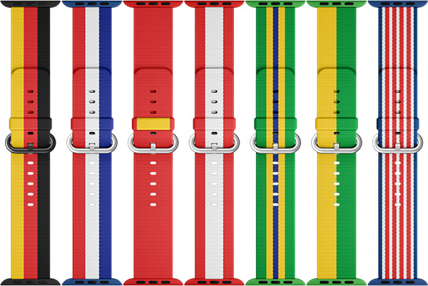 ในช่วงการแข่งขันโอลิมปิกปี 2016 ที่เมืองรีโอเดจาเนโร ประเทศบราซิล Apple ได้เปิดตัวสายไนลอน 14 แบบ โดยเป็นสัญลักษณ์ของประเทศอังกฤษ, สหรัฐอเมริกา, เนเธอแลนด์, แอฟริกาใต้, นิวซีแลนด์, แม็กซิโก, ญี่ปุ่น, จาไมกา, แคนาดา, จีน, บราซิล, ออสเตรเลีย, เยอรมันนี และฝรั่งเศษ โดยเปิดขายที่ Apple Store รีโอเดจาเนโร เพียงแห่งเดียว ราคา 49 ดอลลาร์สหรัฐ