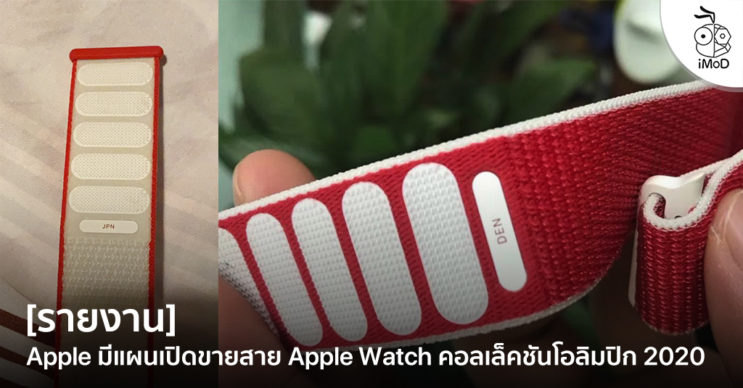 ทวีตเตอร์ L0vetodream ได้เผยแพร่รูปภาพสาย Apple Watch ที่เป็นสายแบบ Sport Loop ที่มีสีขาวสลับด้วยขอบสีแดง เป็นสีสันประจำชาติของประเทศเจ้าภาพโอลิมปิก 2020 อย่างญี่ปุ่น รวมถึงมีตัวอักษรย่อ JPN ติดด้านในสายด้วย