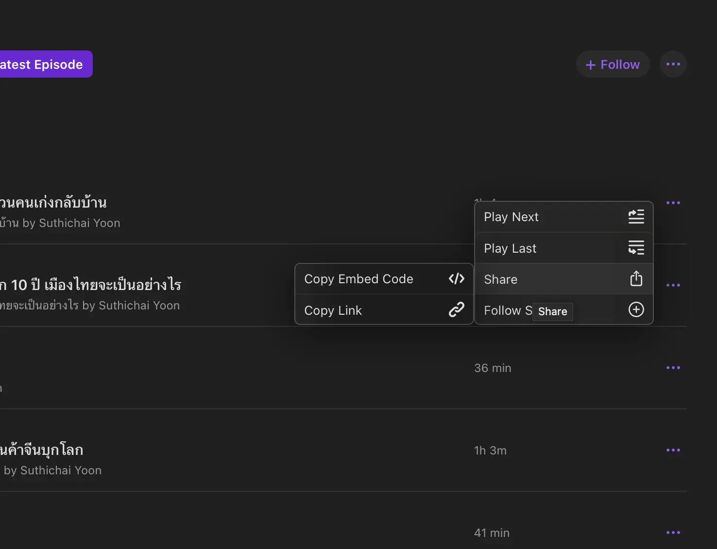นอกจากนั้น ผู้ใช้ยังสามารถแชร์รายการ, คัดลอก Embeded Code เพื่อนำรายการที่สนใจไปฝังไว้ที่เว็บไซต์ต่าง ๆ ได้โดยไม่ต้องทำผ่านแอป