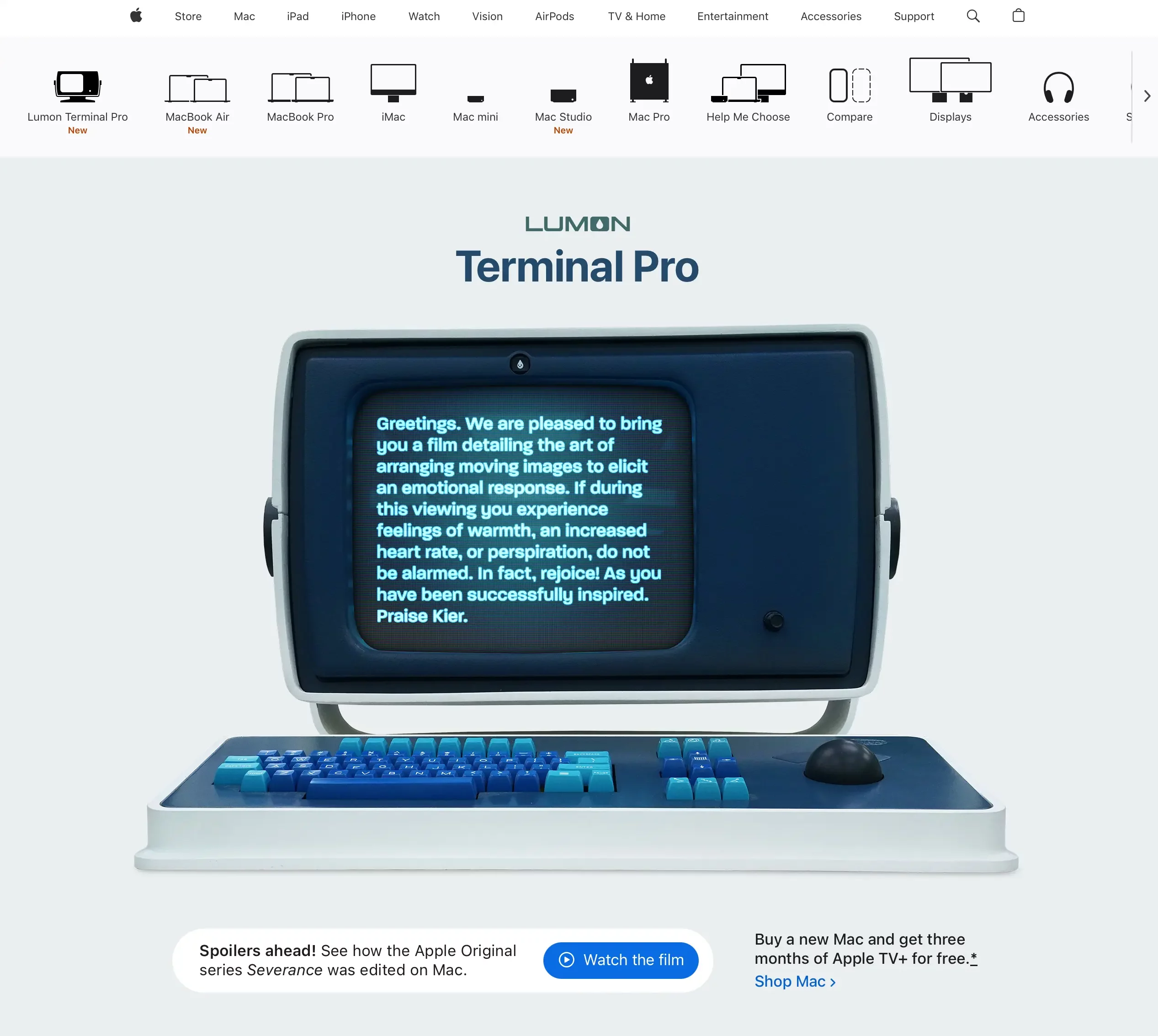 Apple ได้เปิดหน้าเว็บ “Lumon Terminal Pro” ในหน้าเว็บ Mac เพื่อใช้ในการโปรโมทซีรีส์ Severance ใน Apple TV+