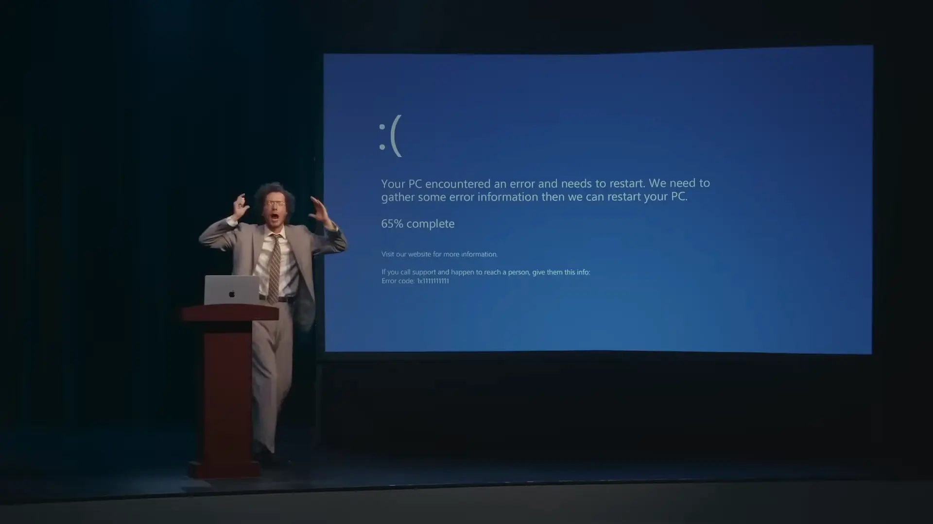 (เนื้อหาในโฆษณามีการพูดถึง Windows ของ Microsoft ด้วย โดยแซวเรื่องหน้าจอ blue sreen)