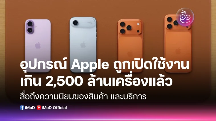 Apple เปิดเผยว่ามีอุปกรณ์ที่เปิดใช้งานอยู่ทั่วโลกเกิน 2,500 ล้านเครื่องแล้ว สะท้อนความพึงพอใจของผู้ใช้งานและโอกาสขยายธุรกิจบริการของบริษัท