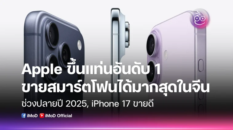 Apple ขึ้นแท่นอันดับ 1 ขายสมาร์ตโฟนได้มากสุดในจีน ช่วงปลายปี 2025