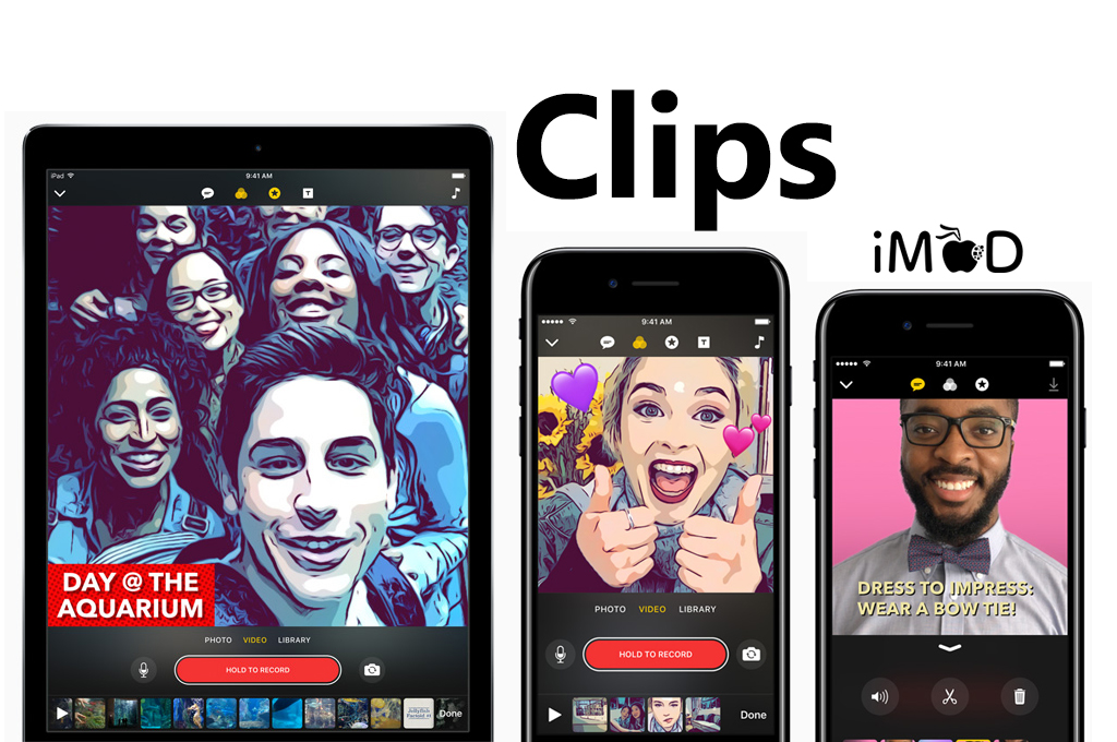“Clips” แอปวิดีโอใหม่ใน iOS เป็นแอปที่ Apple พัฒนาและปล่อยให้ใช้งานเอง โดยคุณสมบัติหลักๆ ของแอปนี้คือ บันทึกวิดีโอได้ทันที (กดที่ปุ่มอัดค้างไว้), สร้างคำบรรยายแบบเคลื่อนไหวจากคำพูด (Live Titles), ใส่ข้อความ เอฟเฟ็กต์ กราฟิกต่างๆ และแชร์วิดีโอได้จากแอป Clips