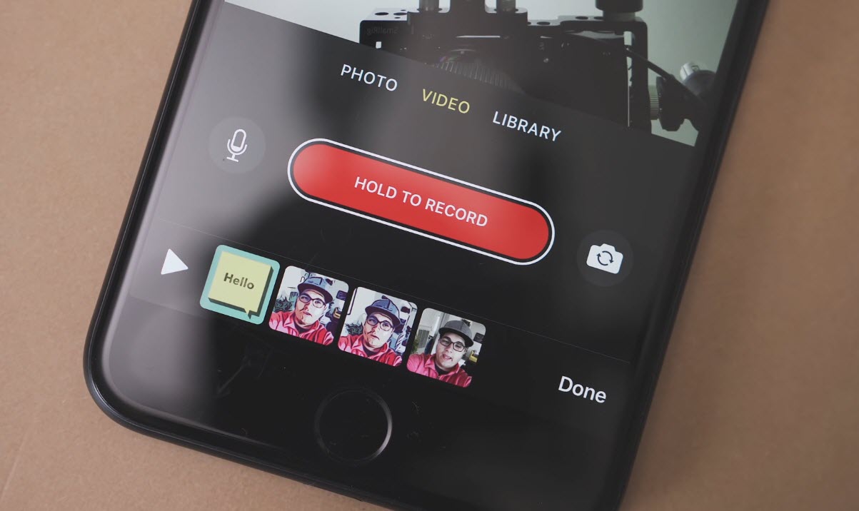 - ใส่ emoji, ฟองคำพูด, ลูกศรและเพลงระหว่างการอัดวิดีโอหรือเลือกวิดีโอจากคลังมาตกแต่งได้