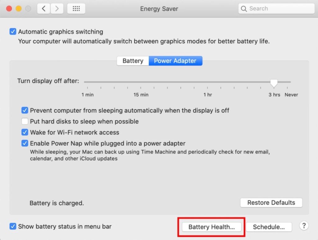 ไปที่ System Preferences > Energy Saver > Battery Health