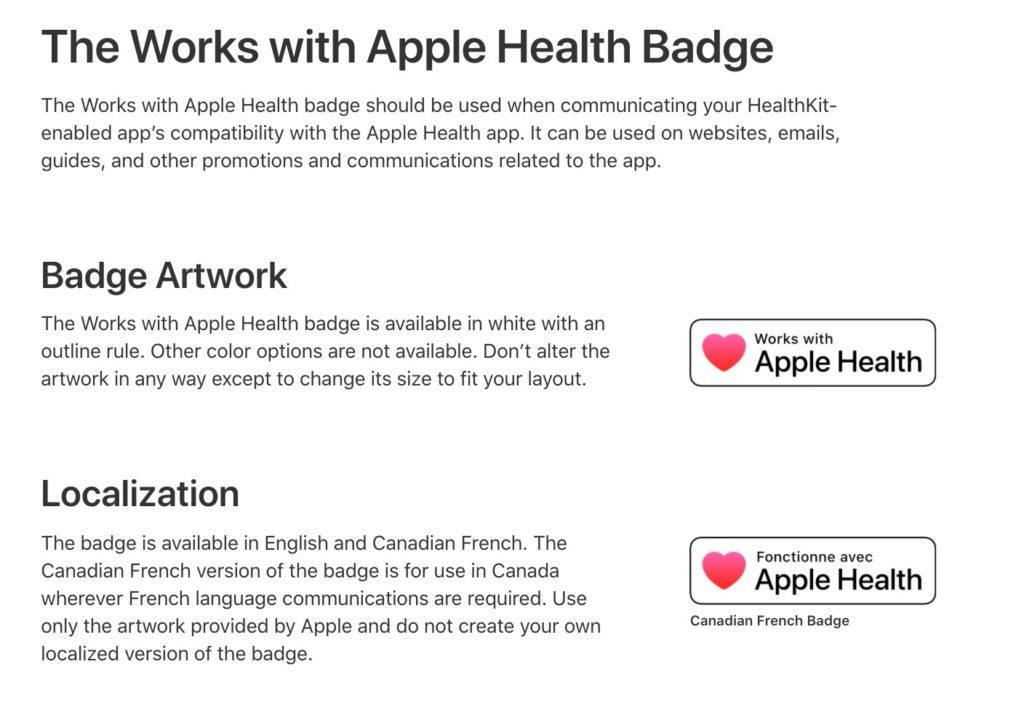 Apple ได้อัปเดตหลักเกณฑ์ในเว็บไซต์นักพัฒนาสำหรับ HealthKit ให้นักพัฒนาได้ใช้งานโลโก้ Works With Apple Health ร่วมกับแอปสุขภาพที่พัฒนา