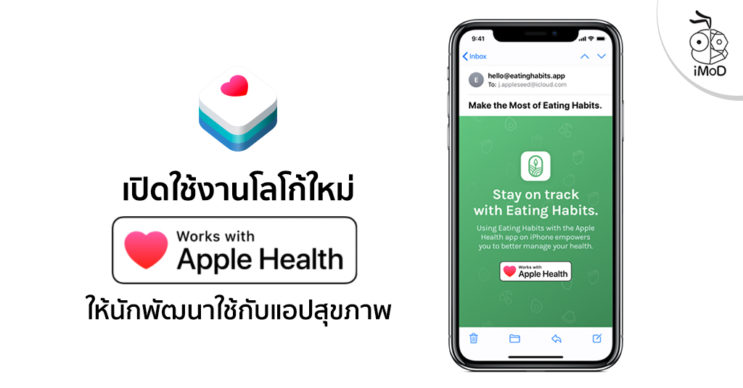 หลังจากนี้เราอาจจะได้เห็นโลโก้ Works With Apple Health ในเว็บไซ์ อีเมล หรือข้อมูลประชาสัมพันธ์อื่น ๆ จากแอปสุขภาพมากขึ้น เป็นสัญลักษณ์ที่ทำให้เราได้ทราบว่าแอปเหล่านี้ทำงานร่วมกับแอปสุขภาพ (Health) ของ Apple ซึ่งจะมีการเข้าถึงและให้ข้อมูลสุขภาพในด้านต่าง ๆ