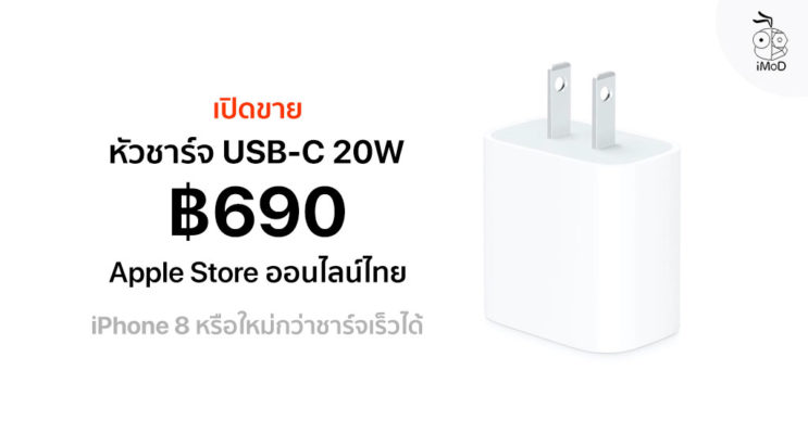 Apple ไม่ใส่หัวชาร์จมาในกล่อง iPhone ที่วางขายตอนนี้ แต่ได้เปิดขายหัวชาร์จ USB-C ขนาด 20W ราคา 690 บาท ช่วยให้ iPhone 8 หรือใหม่กว่าชาร์จเร็วได้