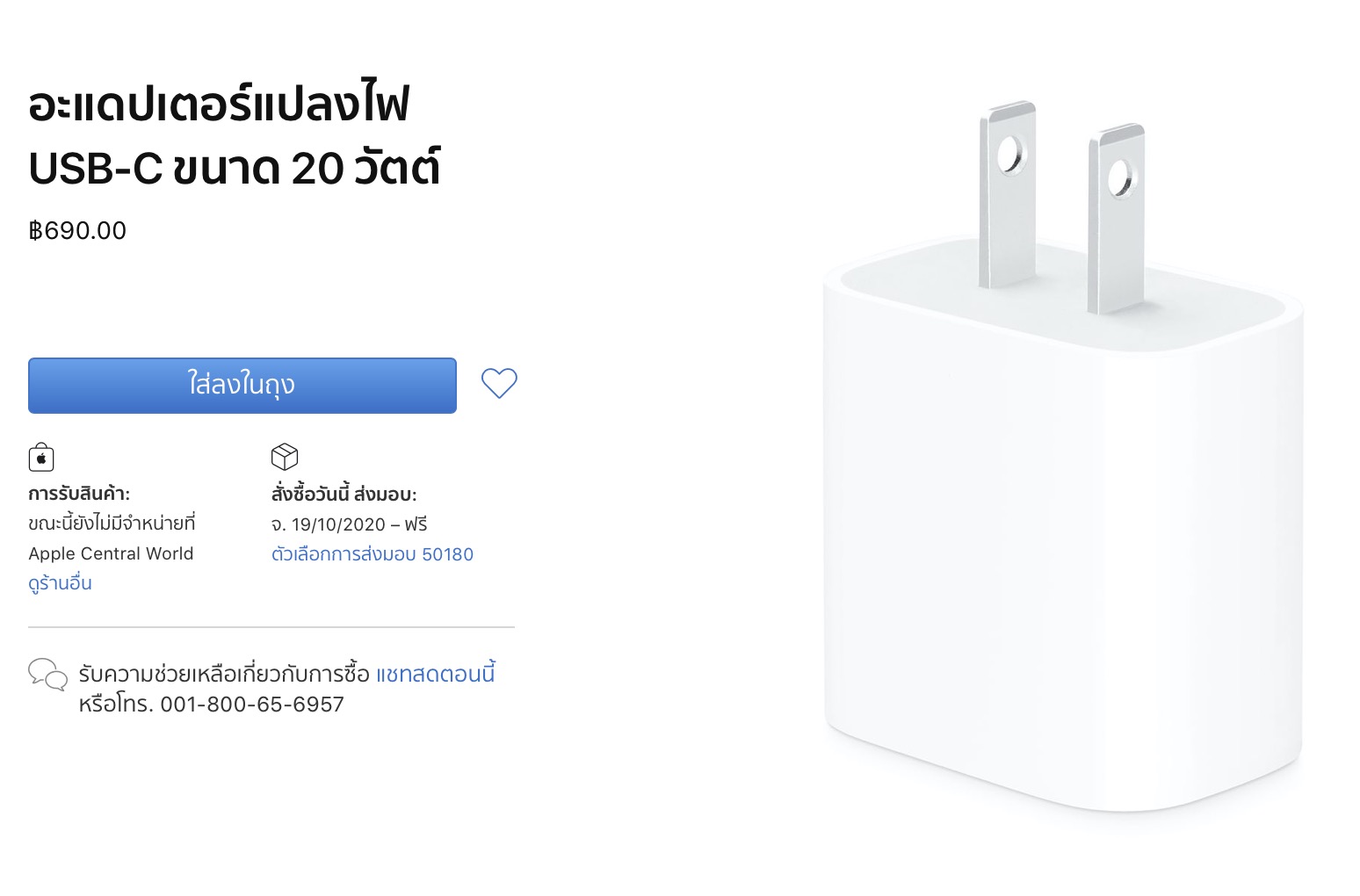 กดสั่งซื้อหัวชาร์จ USB-C ขนาด 20W ได้แล้วที่ Apple Store ออนไลน์ไทย