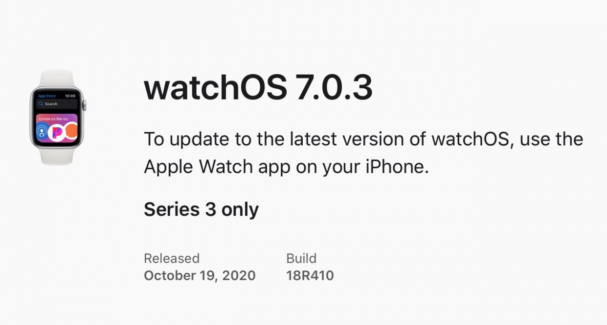 Apple ได้ปล่อยอัปเดต watchOS 7.0.3 สำหรับ Apple Watch Series 3 โดยแก้แก้ปัญหาเครื่องรีสตาร์ทเองที่เกิดขึ้นกับผู้ใช้บางราย ใครเจอปัญหาอัปเดตได้เลย