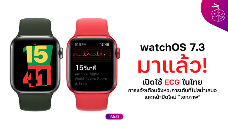 Apple ปล่อย watchOS 7.3 ให้ผู้ใช้ทั่วไปได้อัปเดตแล้ว เวอร์ชันนี้ได้เปิดใช้งานฟีเจอร์วัดคลื่นไฟฟ้าหัวใจ (ECG/EKG) เปิดใช้งานการแจ้งเตือนจังหวะการเต้นที่ไม่สม่ำเสมอ และมาพร้อมหน้าปัดใหม่