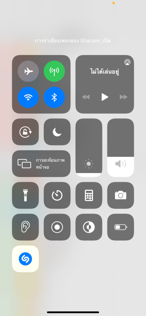 สามารถเลือก Shazam (แอปหาชื่อเพลง) มาเป็นทางลัดที่ Control Center ได้