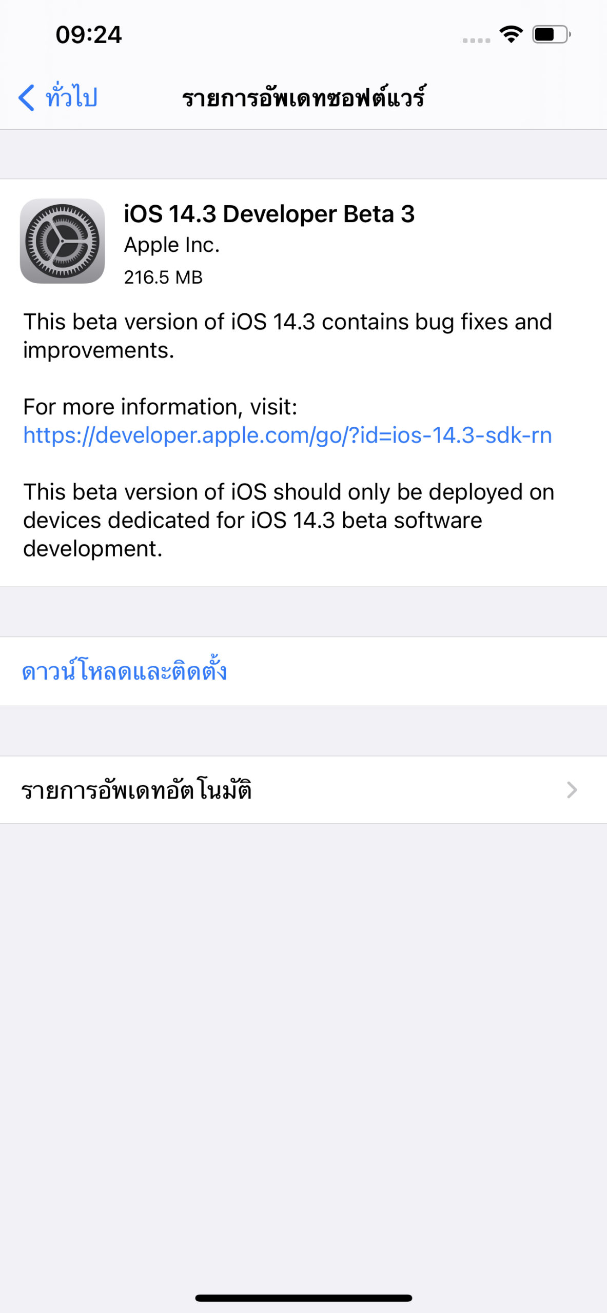 Apple ปล่อย iOS 14.3 Public Beta 3 ให้ผู้ลงทะเบียนทดสอบ โดยในเวอร์ชันนี้เน้นปรับปรุงประสิทธิภาพจากเวอร์ชันก่อนหน้า